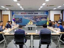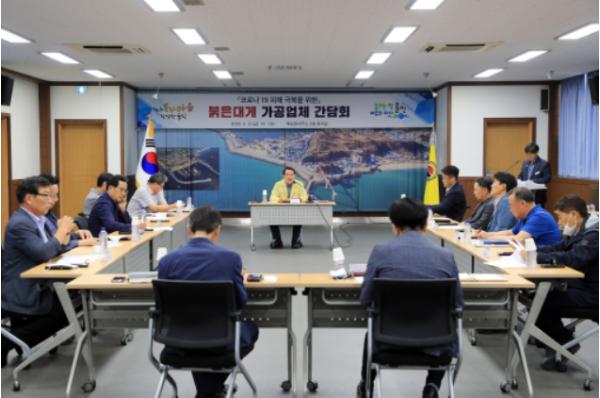 울진군(군수 전찬걸)은 지난 12일 코로나19 사태 및 지속되는 불경기로 경영이 더욱 어려워진 관내 붉은대게 가공업체들의 애로사항 청취 등을 위해 간담회를 가졌다.