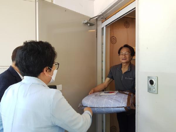 6일 광산구 수완동 지역사회보장협의체(위원장 김기순)가 호국보훈의 달을 맞아,국가유공자 세대 15곳에 여름이불을 전달하고, 감사의 마음을 전했다.