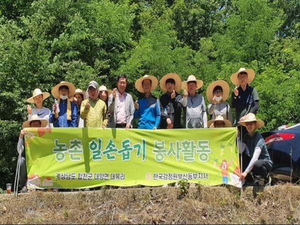 한국감정원(원장 김학규) 부산동부지사(지사장 김석천 감정평기사)는 지난 16일 오전부터 김석천 지사장 등 20여명 직원들이 참여한 가운데 합천군 대양면 이계마을에서 농촌일손돕기를 실시했다.