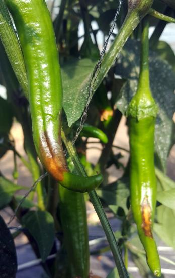 고추 석회 결핍은 양분 간 경합으로 칼슘 흡수가 안 될 때나 여름철 지나친 고온과 건조 등으로 토양 수분이 부족할 경우에 많이 발생한다.