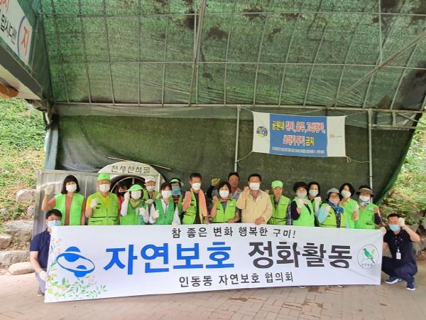 인동동(동장 문창균)에서는 6. 17(수) 10:00에 인동동 자연보호협의회(회장 황미자)회원 30여명이 참여한 가운데, ‘행복홀씨 입양사업장’ 천생산 석굴과 이계천 주변 산책로를 중심으로 환경정비를 실시하였다.