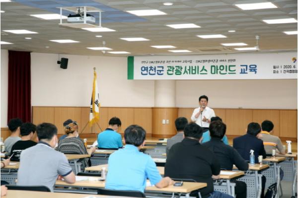 이번 교육은 특히 전곡읍 상인회 회원들 40여 명을 대상으로 연천군수와 이종민 관광과장 등이 참석한 가운데 진행되었다. 김광철 군수는 특강에서 연천군 관광산업의 비전과 발전에 대한 기대를 주민들과 함께 공유하며 특히 상인들의 역할을 강조했다. 이어진 강좌에는 김재현 건국대 산림조경학과 교수의 연천임진강 생물권보전지역의 가치와 생태관광에 대해 강의하며 연천군 관광명소뿐만이 아니라 연천군 전체가 관광자원이 되어야 한다고 역설했다. 이어서 노민경 부천대 호텔관광경영학과 교수가 상인들의 맞춤형 실질적인 손님 접대와 서비스 마인드와 관련하여 강의하여 큰 호응을 얻었다. 끝으로 황영택 세무사의 사업자를 위한 절세가이드라는 제목으로 한 강의는 상인들에게 많은 관심을 보였다.