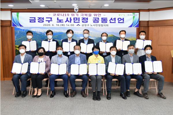 부산 금정구(구청장 정미영) 노사민정협의회(이하 ‘협의회’)는 지난 16일 금정구청 중회의실에서 ‘부산 금정구 노사민정 위기극복 공동선언’을 발표했다.