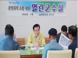 이번 17일 개최한 열린 군수실에서는 군민 3명과 군수가 만나 진입로 개설 및 마을안길 확장 등의 문제를 해결할 수 있는 방법을 함께 논의했다.