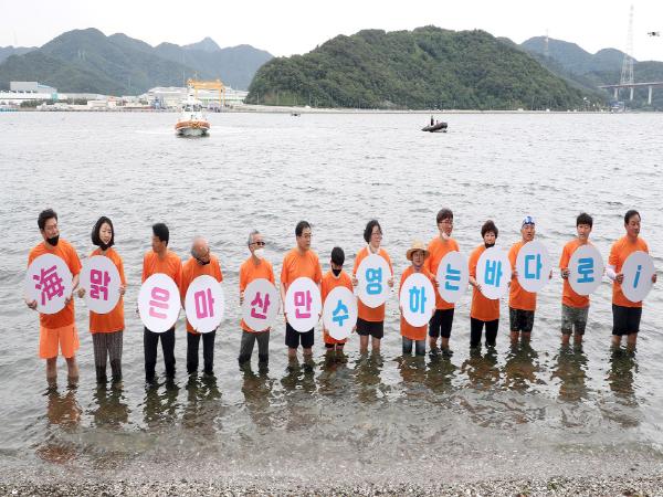 이어 참석자들은 다함께 ‘해맑은 마산만! 수영하는 바다로!’를 외치며 마산만 수질 개선에 대한 의지를 다졌다. 허 시장은 수영으로 20m 거리를 왕복한 후 “‘죽음의 바다’라는 오명을 벗고 다시 이런 날이 오게 돼 감회가 새롭다”고 말했다.