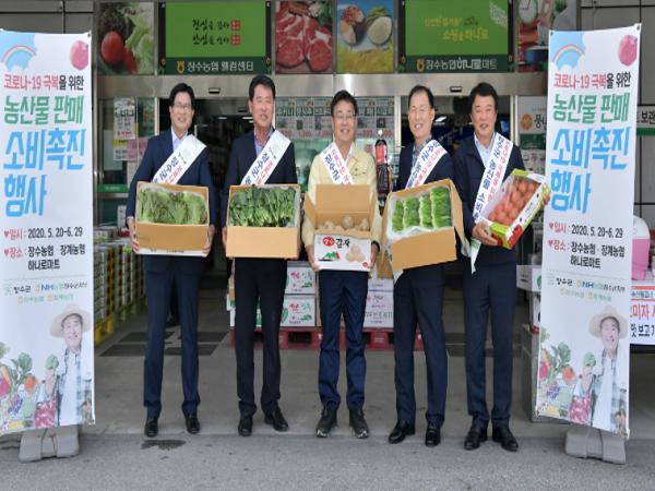 이번 행사는 장수군과 장수농협, 장계농협이 코로나19로 어려움을 겪는 농산물 생산 농민을 돕고, 지역 농산물 소비위축을 해소하고 지역경제를 활성화하자는 취지로 마련됐다.