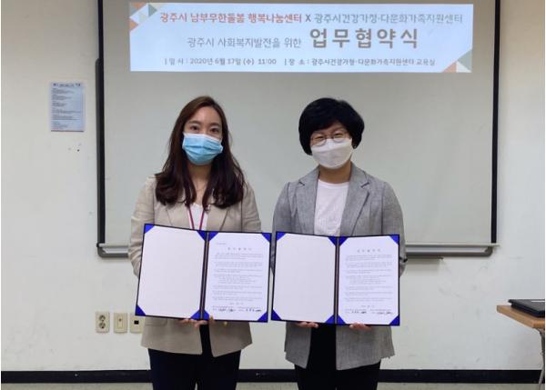 광주시 남부 무한돌봄 행복나눔센터와 광주시 건강가정·다문화가족지원센터는 지난 17일 건강가정·다문화가족지원센터에서 사회복지발전을 위한 업무협약을 체결했다.