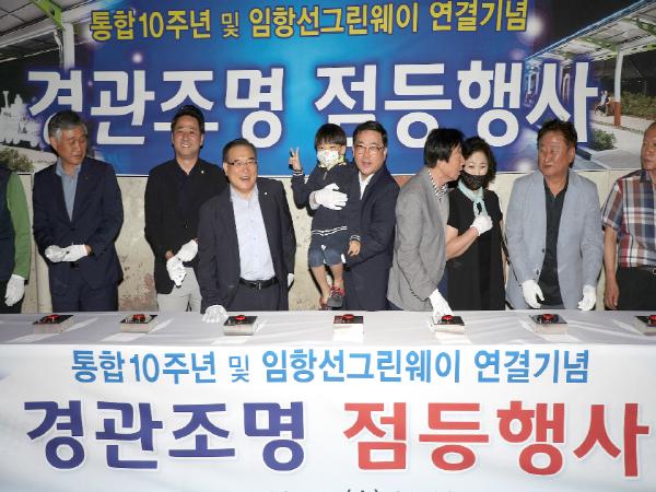 이날 허성무 창원시장을 비롯해 박삼동 도의원, 김종대·임해진 시의원, 인근 상인들과 주민 등 약 100여 명이 참석했다. 이들은 임항선 그린웨이의 랜드마크를 알리는 불빛을 밝혔다.