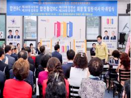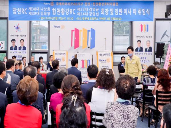합천?합천황강로타리클럽?회장?합동?이?취임식이?지난?17일?합천애로컬푸드 직매장 3층 대회의실에서?문준희?군수,?석만진?군의회의장,?김윤철 경남도의원, 국제로타리클럽?3590지구?안재원?총재를?비롯한?관내?기관단체장과?클럽?회원?등?180여명이?참석한 가운데?개최됐다.