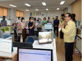 이날 한정우 군수를 비롯한 군 관계자들은 학교 내 코로나19 방역 현황에 대한 설명을 듣고 열화상 카메라 및 손소독제 비치현황, 교실 책상 배치현황 등 감염병 예방 조치사항을 점검했다. 이어 감염병 확산 방지를 위한 학교 현장 의견을 경청하고 교직원과 학생들을 격려했다.