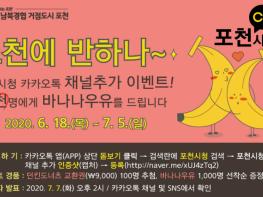 또한, 시는 카카오톡 채널 추가 이벤트를 진행한다. 6월 18일부터 7월 5일까지 포천시청 ‘카카오톡 채널’을 추가한 인증샷(캡처본)을 네이버폼(http://naver.me/xUJ4zTq2)을 통해 첨부 작성하면, 선착순 1,000명에게 바나나 우유를, 추첨으로 100명에게 던킨 도너츠 9천원권을 지급한다.