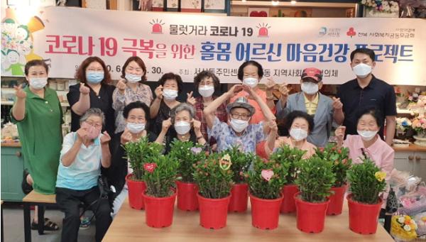 전주시 서신동(동장 김선중)은 동 지역사회보장협의체(위원장 김봉철)와 함께 코로나 19로 지친 홀몸 어르신들의 마음을 달래드리기 위해 ‘홀몸 어르신 마음건강 프로젝트’를 11일부터 19일까지 진행했다고 밝혔다.