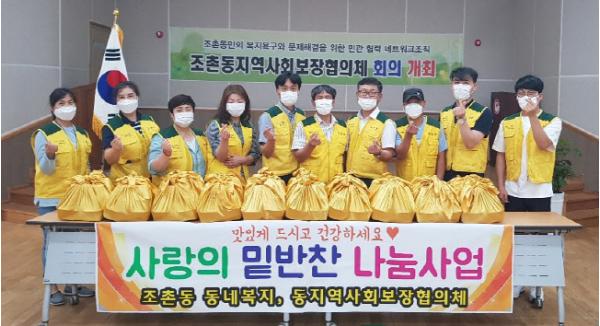 조촌동장은 “관내 결식우려 취약가정에 밑반찬이 지원되어 건강한 생활을 유지할 수 있도록 지속적으로 민간기관과 연계하여 최선을 다하겠다.”고 말했다.