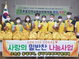 “사랑의 밑반찬 지원사업”은 조촌동 지역사회보장협의체 특화사업으로 찾아가는 복지상담을 통해 발굴된 가정 중 음식준비가 어려워 결식이 우려되는 홀로어르신 및 장애인 등 총 40세대를 지원하는 사업이다.