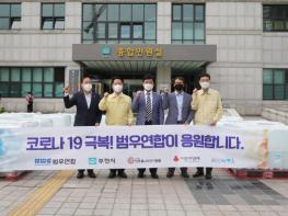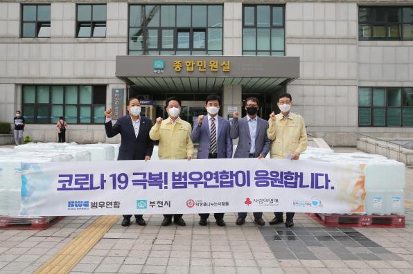 지난 18일 범우연합의 후원을 통해 사랑의열매, (사)희망을 나누는 사람들, 부천희망재단에서 살균소독제 20리터(L) 576통을 부천시에 전달하며 희망을 나누었다.