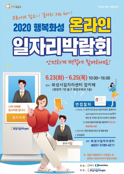 화성시가 코로나19 장기화로 채용시장이 침체됨에 따라 비대면 온라인 일자리박람회로 구직자와 구인기업 돕기에 나섰다.