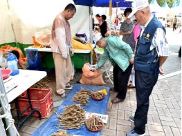 코로나19 예방을 위해 장터 입구 양쪽에 손소독제를 비치하고 자원봉사자 8명이 발열체크를 한다. 구는 구민들에게 생활방역 수칙 준수를 위한 개인 마스크 착용과 간격유지 등을 당부했다.