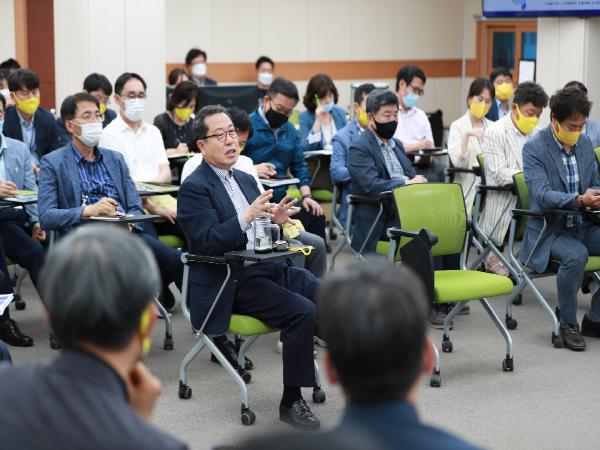 이날 회의는 조광한 시장을 비롯, 박신환 부시장과 실국소장 및 관계 공무원 등이 참석한 가운데 민선7기 이후 추진해 온 사업들을 점검하고, 앞으로 시 발전을 위해 중점적으로 추진해야하는 전략과 과제 내용을 공유한 뒤 논의하는 순서로 진행됐다.