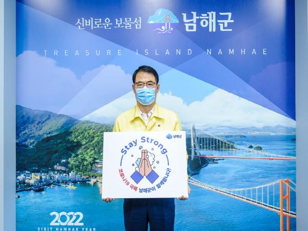 장충남 남해군수가 지난 19일 코로나19를 굳건하게 이겨내자는 ‘스테이 스트롱(Stay Strong)’ 캠페인에 동참했다.