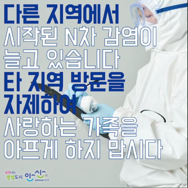 특히 무증상, 경증이 많은 코로나19 특성상, 감염 사실을 인지하지 못하고 가족 및 주변으로 전파될 가능성이 커 사전에 다른 지역 방문을 최대한 자제하는 것이 중요하다.