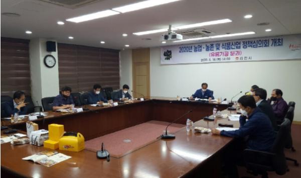 김천시(시장 김충섭)는 6월 18일(목) 김천시 농업기술센터 2층 세미나실에서김천 대표 특화 음식 개발 시범사업 대상자 선정을 위한 2020년 김천시 농업·농촌 및 식품산업 정책심의회(유통·가공분과)를 개최했다.