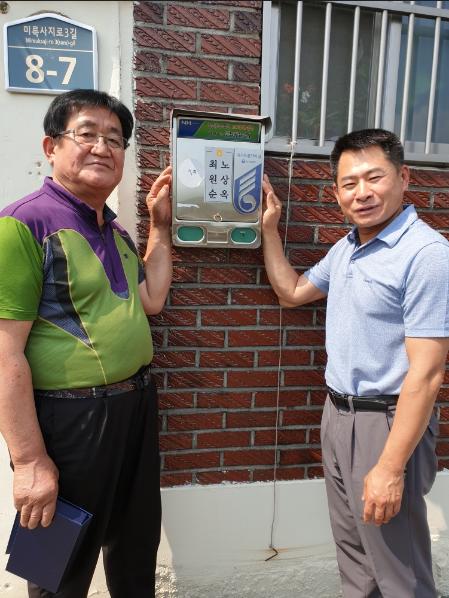 이○조 유공자 외 17명을 대상으로 마을이장과 동행하여 각 가정을 방문하여 ‘국가유공자의 집’명패를 전달 및 부착하고 있으며, 국가유공자에게 존경과 감사의 뜻을 전하였다.
