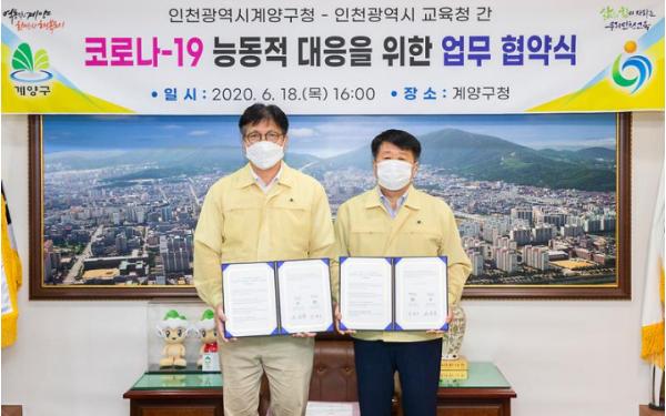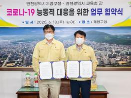 인천 계양구(구청장 박형우)는 지난 18일, 인천광역시 교육청과 ‘코로나19 대응 업무협약’을 체결하고 학교에 확진환자 발생 시 공동 대응하기로 했다.