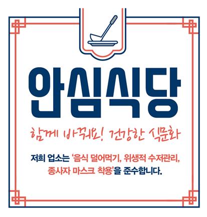 이미 안심식당을 운영 중인 지자체는 기존 지정 표시를 활용하면 되고, 신규로 안심식당을 운영할 지자체는 농식품부에서 지정 표시 도안을 제시하였다.
