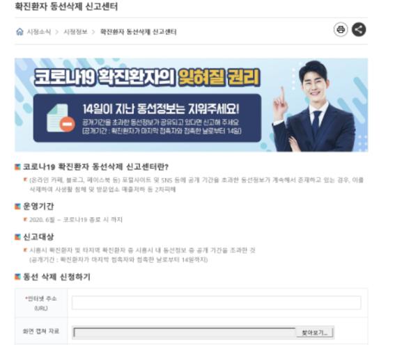 방법도 간단하다. 동선이 게재된 인터넷 주소(URL)만 입력하면 동선 삭제 신청이 완료된다.