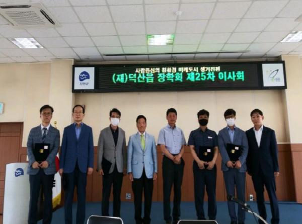 진천군 (재)덕산읍장학회(이하 장학회)는 19일 덕산읍행정복지센터에 지역 학생들을 위한 장학금 및 기금을 전달했다.