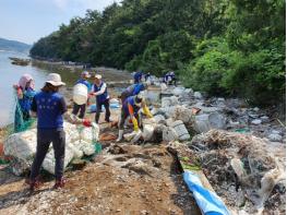 통영시는 6월 19일 광도면 죽림리 이도 해안변에서 해양쓰레기 수거활동을 펼쳤다.
