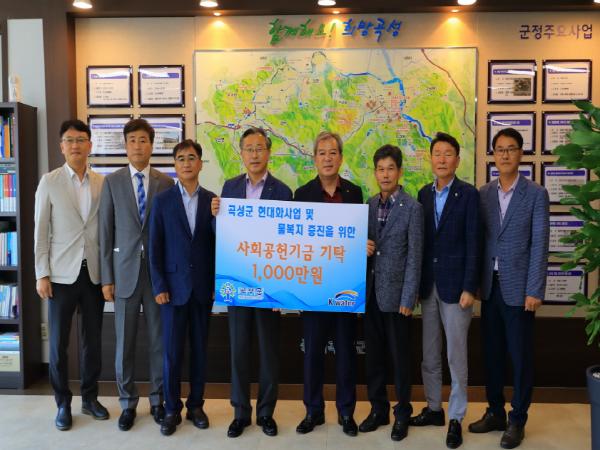 수공 영섬 유역본부는 곡성군에서 지방상수도 현대화사업을 위탁 수행하고 있다. 이번 기탁으로 사업의 원활한 추진과 취약계층의 수도요금 부담 일부 해소를 기대하고 있다. 기탁금은 수공 영섬 유역본부 및 전남지역협력단 임직원의 급여 일부를 모아 조성됐으며, 전남사회복지공동모금회를 통해 곡성군에 지정 기탁된다.