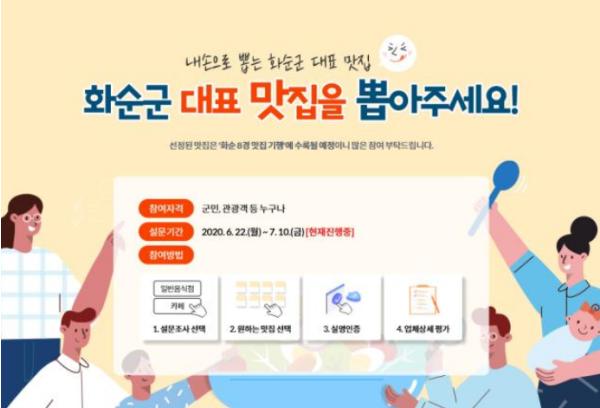 군 관계자는 “맛집 선정과 관광 화순 홍보를 통해 코로나19로 어려움을 겪는 외식업계와 관광 서비스 업계, 문화관광 활성화를 도모하겠다”며 “우리 군을 대표할 맛집 선정에 군민과 관광객의 많은 관심과 참여를 부탁드린다”고 말했다.