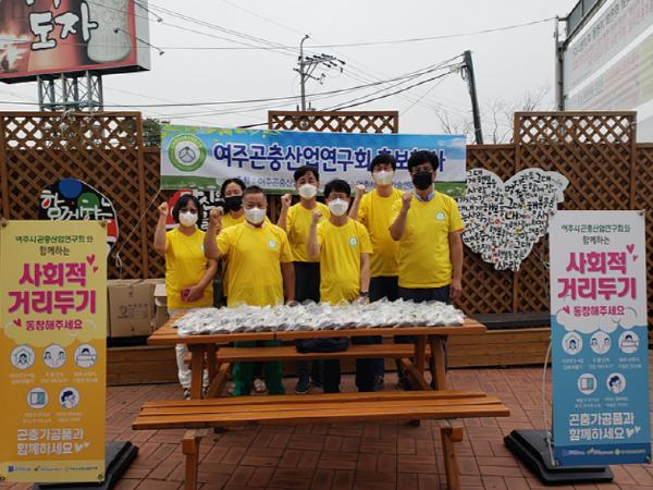 여주시농업기술센터(소장 이용기)가 육성하는 여주시곤충산업연구회(대표 김용평)는 지난 18~19일 여주휴게소(서창방향)에서 여주시에서 생산된 곤충으로 만든 가공품을 코로나19 생활속 거리두기 캠페인과 병행하여 홍보했다.