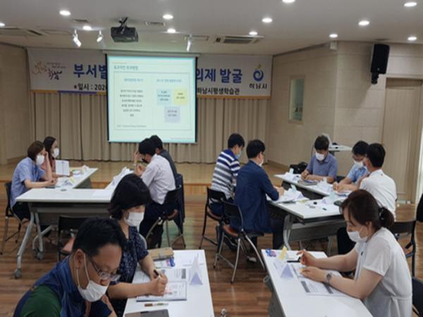 하남시는 시청 35개 부서 및 14개 동 행정복지센터 주무팀장 49명이 모여‘시민의 정주성 향상을 위한 부서별 평생학습 측면 의제 발굴’ 이라는 아젠다를 가지고 실행전략을 도출해 보는 프로젝트를 추진해 지난 18일 하남시 평생학습관에서 첫 모임를 가졌다.