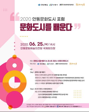 안동시와 안동축제관광재단은 오는 6월 25일 오후 2시 안동문화예술의전당 국제회의장에서 ‘문화도시를 배운다’라는 주제로 포럼을 개최한다.