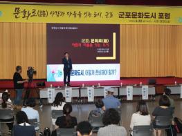 군포시는 6월 22일 시청에서 한대희시장과 관련분야 전문가, 일반 시민 등이 참석한 가운데 군포문화도시 포럼을 열어, 시가 추진하고 있는 문화도시 조성방안 등을 논의했다.