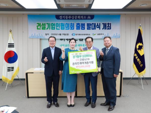 남양주시 경기동부상공회의소(회장:성희승)는 지난 19일 건설기업인협의회 발대식 자리에서 코로나19 극복을 위해 후원금 1,000만원을 전달했다.