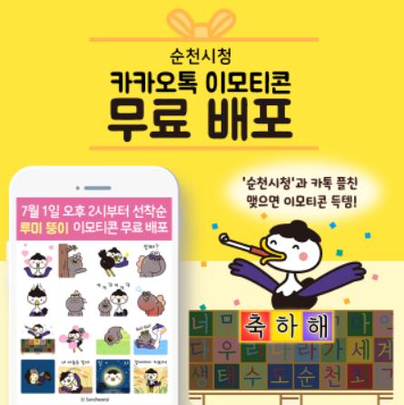 순천시는 민선7기 2주년을 맞아 오는 7월 1일 오후 2시부터 카카오톡 이모티콘‘루미?뚱이’이모티콘 16종을 무료로 배포한다고 밝혔다.