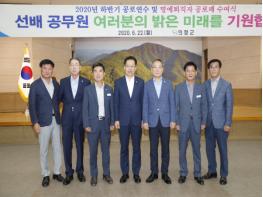 이날 수여식의 주인공은 강현배 산업건설국장, 차성길 친환경골프장사업소장, 김덕곤 정곡면장, 최경민 계장, 고병용 계장, 신경철 계장이 공로연수에 들어가고 농업기술센터 안성구 농축산유통과장, 신동석 시설관리사업소장이 명예퇴직을 하게 된다.