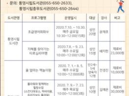 통영시립도서관에서는 성인을 위한 독서문화프로그램으로 ‘초급영어회화Ⅳ’와 ‘지혜를 찾아가는 심리타로 교실’2강좌가 준비되어 있다. 또 충무도서관에서는 성인을 위한 강좌로 ‘울 엄마는 책놀이왕’, ‘플라워와 함께하는 힐링수업’, ‘캐리커처 맛보기‘3강좌와 초등학생을 위한 어린이 독서문화프로그램 ’경남독서한마당 독서논술A/B’2강좌를 운영할 예정이다.