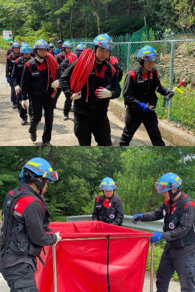 공중진화대 6명과 산불재난특수진화대 24명은 진화차 및 기계화시스템을 활용한 산불진화를 위해 13mm와 8.5mm 진화호스를 1km 이상 산림에 설치하고 각종 상황에 따른 호스분배를 통해 직접진화 및 방화선 구축과 진화헬기가 공중에서 진화하기 어려운 암벽지나 고사목, 훈증목 등의 불씨 제거를 중점으로 훈련을 실시했다.