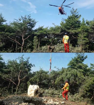 청양산림항공관리소는 충청남도의 헬기지원 요청을 받아, 차와 사람이 접근하기 어렵고 산악지형이라는 악조건 상황에 가장 효율적인 방법으로 운반할 수 있는 산림항공기(대형 KA-32)를 지원하였다.
