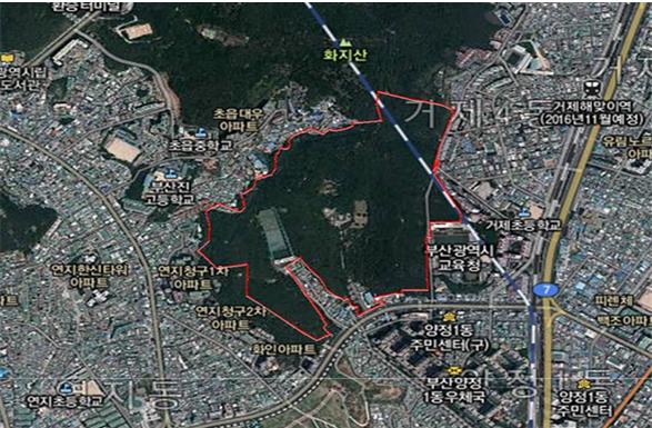 화지공원은 백양산과 시민공원을 연결하는 부산시의 중요한 녹지축이지만, 시민공원 주변으로 각종 개발사업이 진행됨에 따라 공원에서 해제되면 상당 부분의 개발이 불가피한 장소이다.