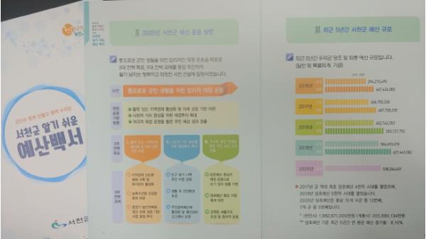 서천군(군수 노박래)은 주민들에게 예산에 대한 기본적인 정보를 제공함으로써 행정에 대한 자긍심을 높이고 공감대 형성을 통한 군정 추진 동력을 확보하고자 ‘군민 누구나 예산을 쉽게 알기 위한 예산 백서’를 제작·배부한다고 밝혔다.