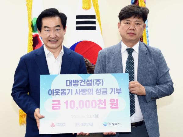 대방건설(주)(대표 정운영)은 6월 23일 의정부시청을 찾아 어려운 이웃을 위해 써달라며 성금 1,000만 원을 기탁했다.