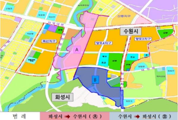화성시 반정동 일원 398필지가 수원시로, 수원시 망포동 일원 361필지가 화성시로 편입되며 면적은 동일하게 19만8천825㎡가 맞교환된다.