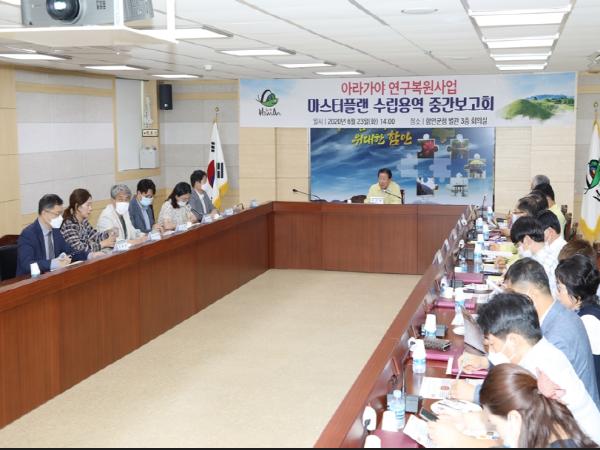 안군은 지난 23일 함안군청 별관 3층 중회의실에서 아라가야 연구복원사업 마스터플랜 수립 용역 중간보고회를 개최했다.