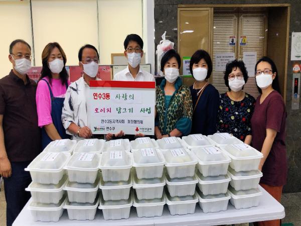 연수3동 지역사회보장협의체(공동위원장 홍만동, 김재식)는 지난 23일 여름철 저소득 노인가구의 균형 잡힌 영양섭취를 돕기 위해 직접 담근 오이지를 저소득층 어르신 40세대에 방문 전달했다.