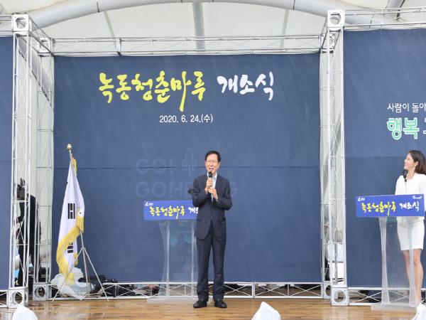 고흥군(군수 송귀근)은 녹동전통시장 내에 청년 창업몰인‘녹동청춘마루’를 준공하고, 6월 24일 개소식을 가졌다.